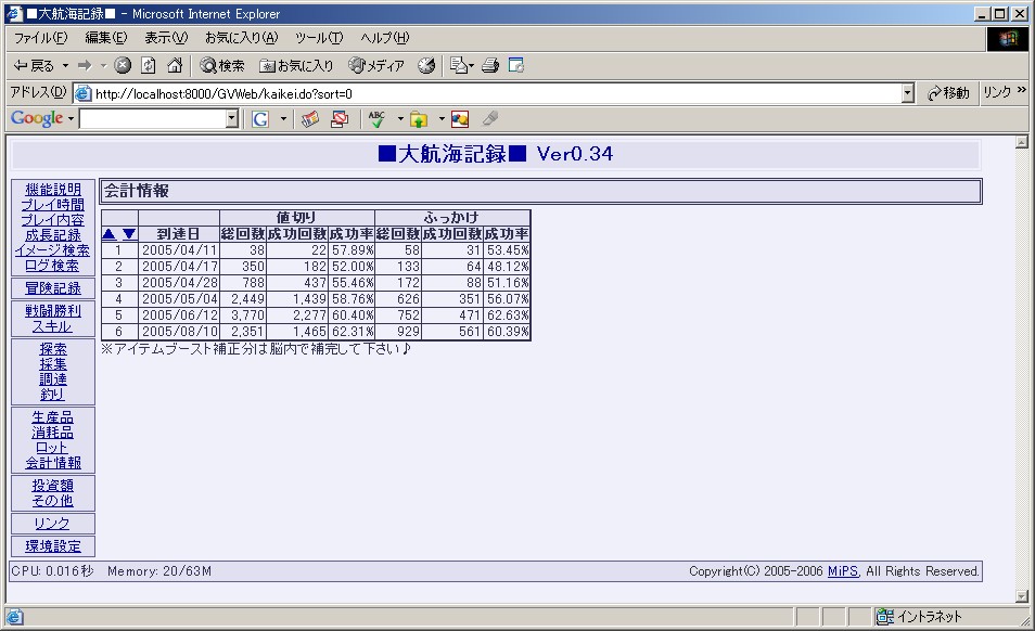 詳細 ・冒険記録にカード取得情報を追加しました(発見済の都市除く)。 ・報告のあったバグを修正しました。 開発後記 二代目副官さんは主計長こそ50超えだけど、倉庫番が20代… 再教育(リストラ)が必要でしょうかorz |